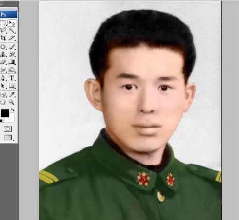 6、用手指涂抹工具拉头发丝和拉眉毛是一样的,要用细小的像素画笔,强度合适,参考下图。在整个旧照翻新的过程中,手指涂抹工具在皮肤上一定要少用甚至不用,因为它能让皮肤纹理模糊没质感了。